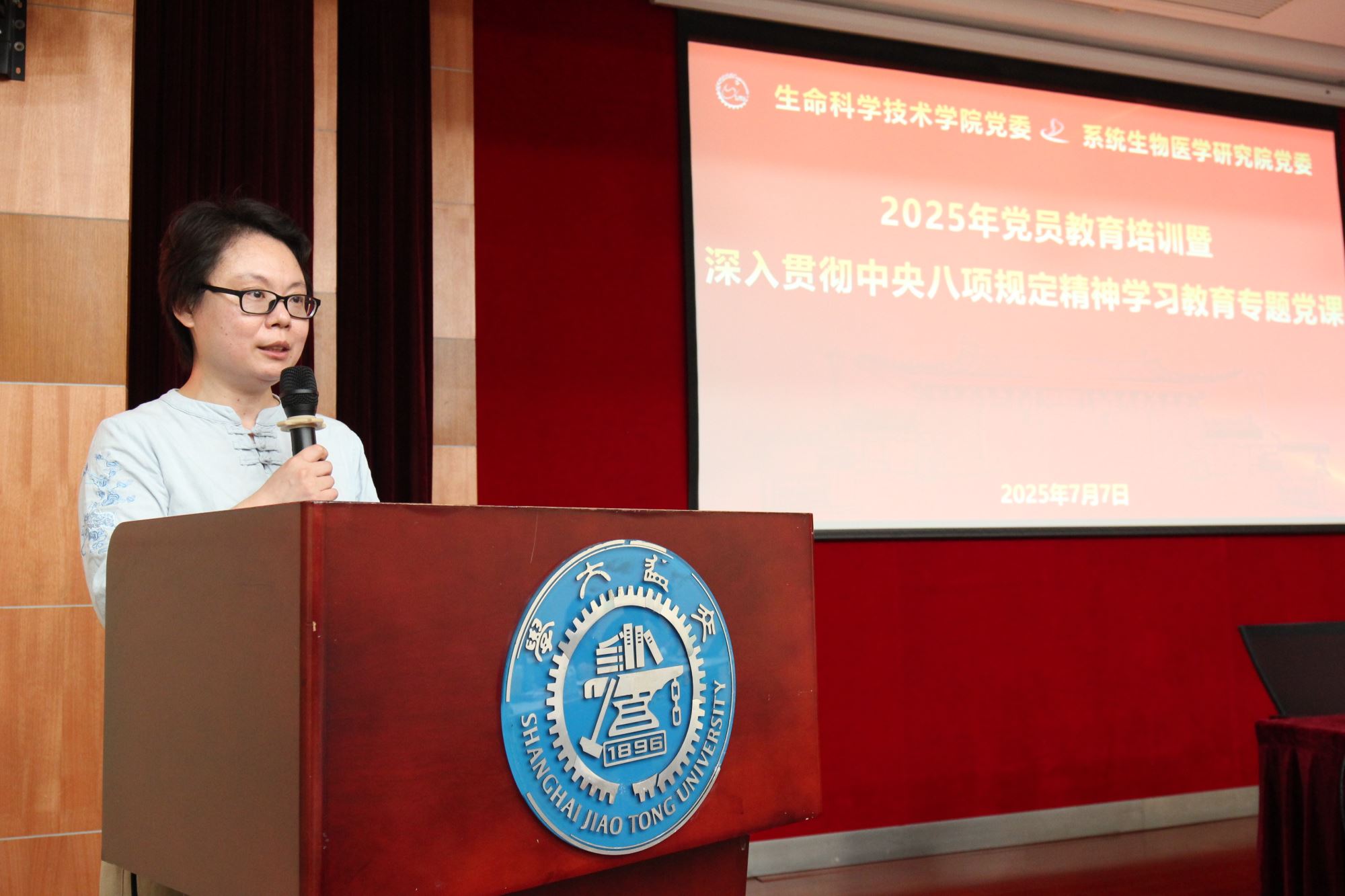 2025年7月7日,bat365正版唯一官网联合系统生物医学研究院党员教育培训暨深入贯彻中央八项规定精神学习教育专题党课,邀请上海市委党校党的建设教研部教授吴海红老师做专题辅导报告。两个单位党政领导班子、党委委员、师生党支部书记、师生党员近200人参加学习。活动由bat365正版唯一官网党委副书记王鑫主持。