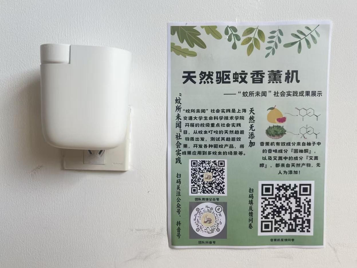 同时,为了检验产品的实际生活场景中使用效果,实践团在校内停车场、会议室、职工车辆等多个应用场景对驱蚊香薰机进行测试,并累计生产6300贴驱蚊贴及100件车载香薰用于产品推广,通过设计海报及问卷,收集用户反馈。