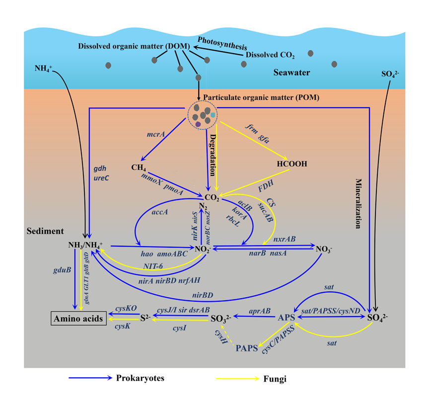 图2. 马里亚纳海沟深渊-超深渊过渡带沉积物真菌驱动的硫循环