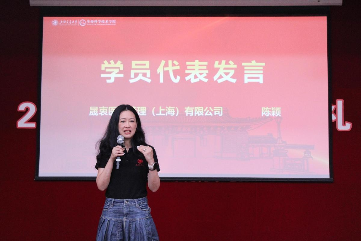 首期学员陈颖作为学员代表发言。她首先表达了对于交大校训和精神具有强烈的认同和体悟,此次选择“AI+生命数据科学”微专业,既是对自身兴趣的追随,也是对未来行业需求的回应。她也对后续课程学习、实践项目抱有期待,并承诺将与其他学员共同努力,扎实掌握专业知识与技能,未来在相关领域发光发热。