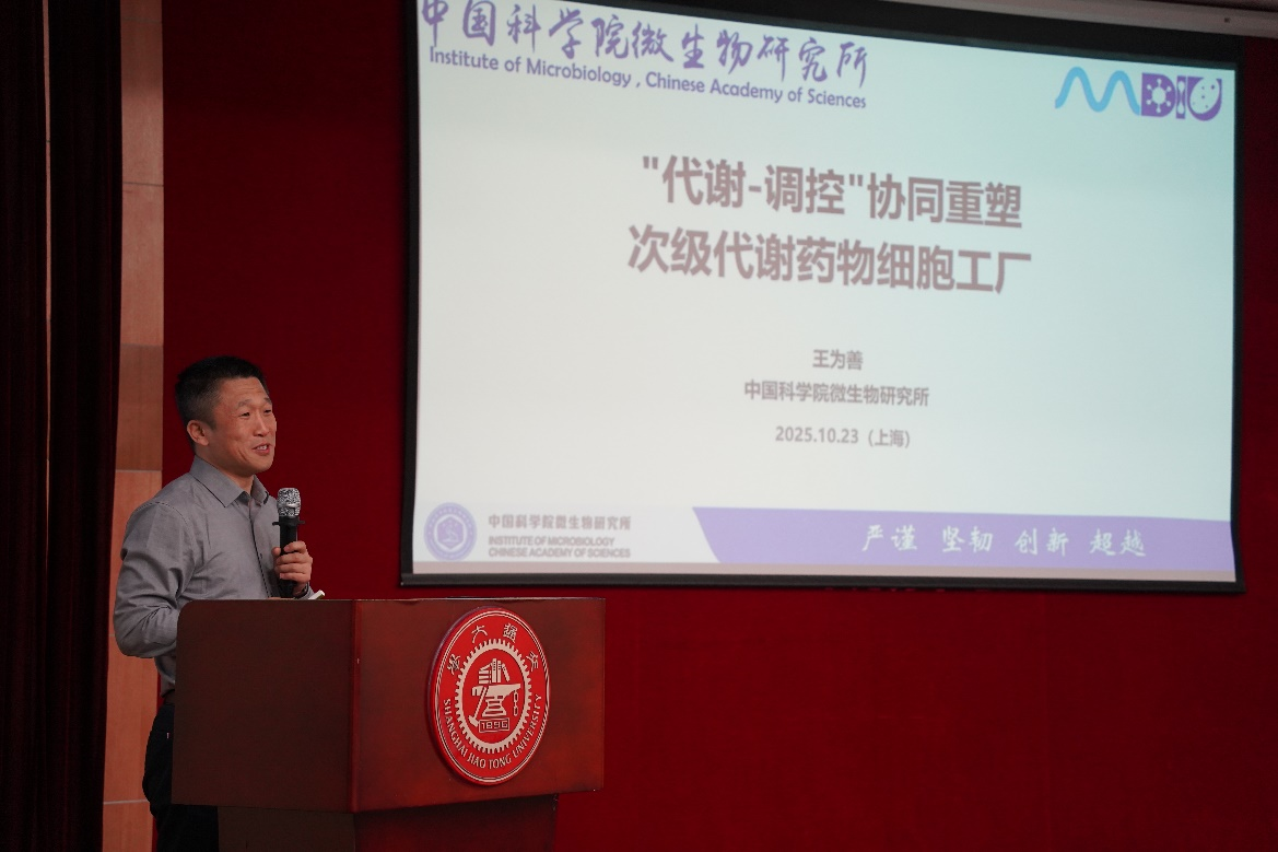 特邀报告环节,中国科学院微生物研究所王为善研究员作了题为“‘代谢-调控’协同重塑次级代谢药物细胞工厂”的学术报告,华东理工大学生物反应器工程国家重点实验室谭高翼教授分享了“CRISPR/Cas使能技术驱动的血红素及卟啉化合物的生物制造”的最新研究成果,在场的教师与特邀专家展开了高水平的学术对话,同学们也积极参与互动研讨。